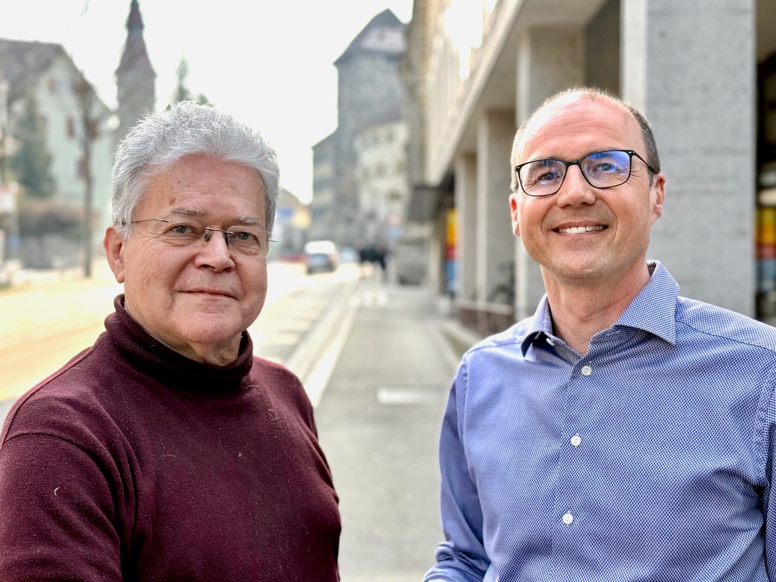 Bild: Andreas Schelling (links) übergibt das Präsidium der GLP Bezirk Frauenfeld an Stefan Thalmann.