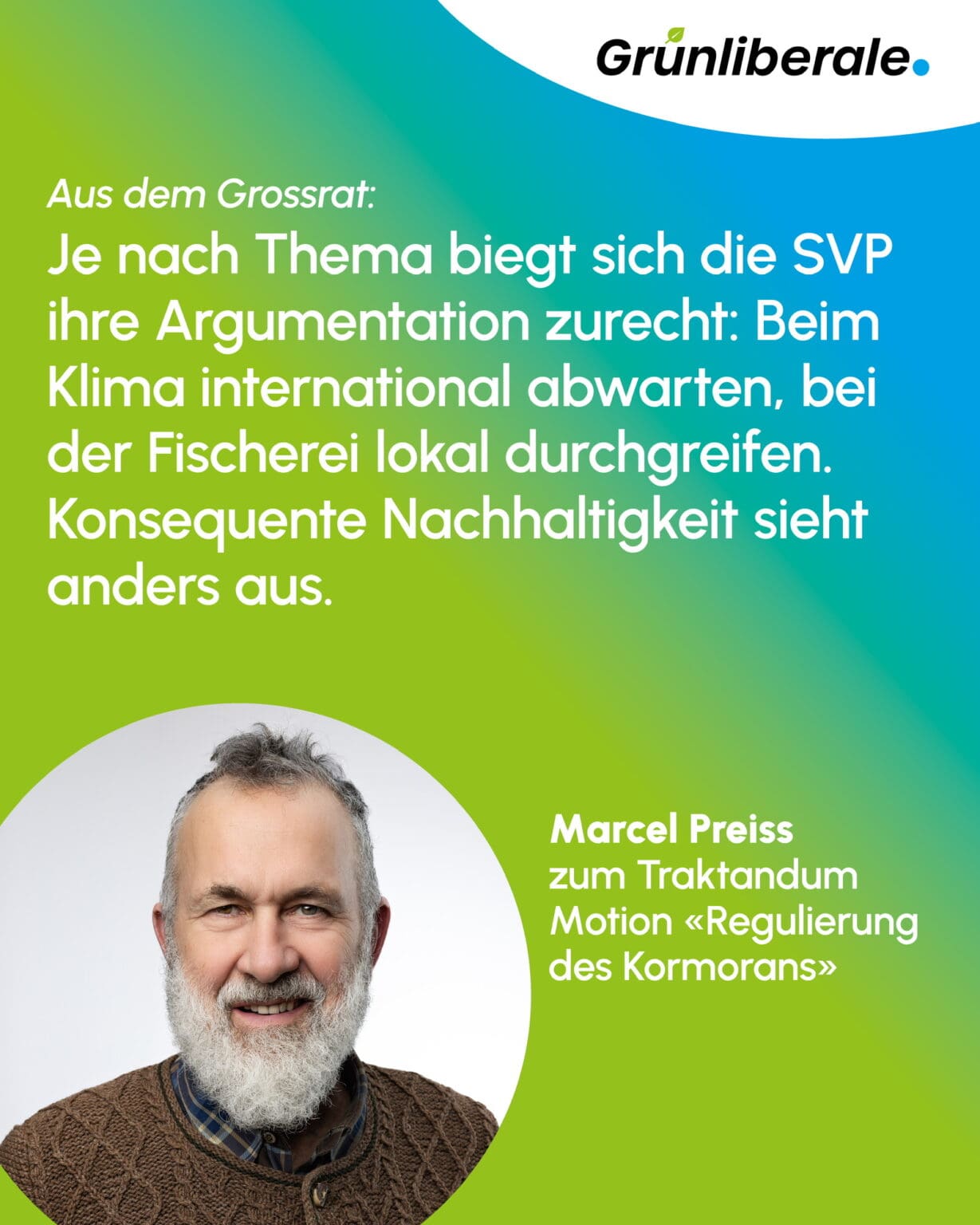 Je nach Thema biegt sich die SVP ihre Argumentation zurecht: Beim Klima international abwarten, bei der Fischerei lokal durchgreifen. Konsequente Nachhaltigkeit sieht anders aus….